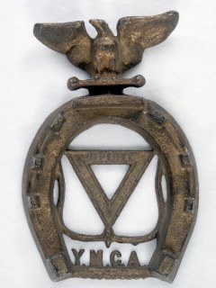 Over the intervening years Bill and Sandy Kotrba have sold the majority of their horseshoe plaque trivet collection. A few years ago I purchased this YMCA horseshoe back from them. What goes around comes around!