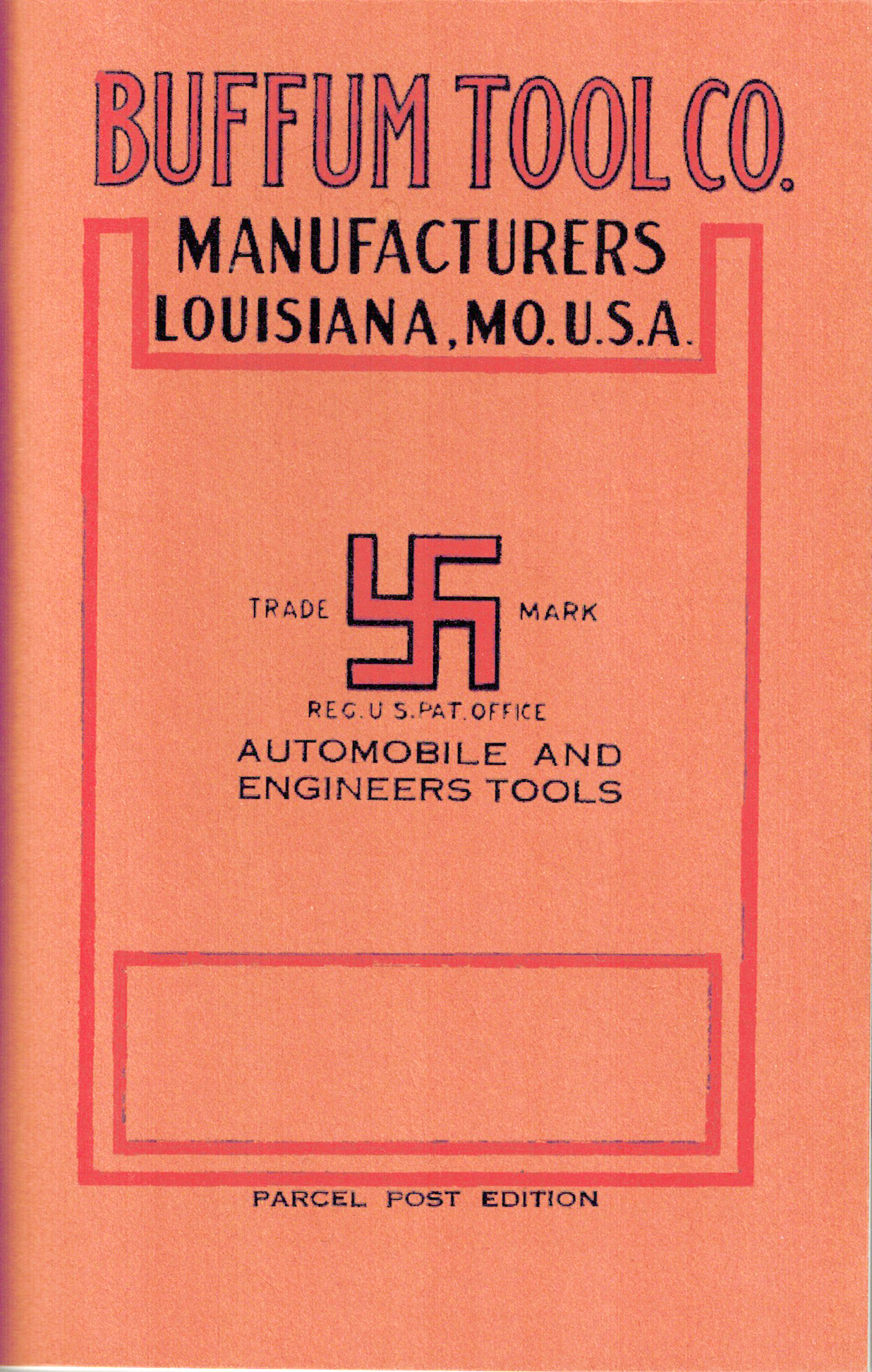 The Buffum Tool Company of Louisiana, Missouri was in business from 1909 – 1922 and the swastika was their registered trademark. I enjoyed a phone conversation last week with long time Buffum collector Ed Johnson, also of of Louisiana, Missouri. Ed studied and collected Buffum tools from 1967 until 2015 when he sold his collection to another collector. Learn more about the Buffum Company at Pike County Genealogical Society.