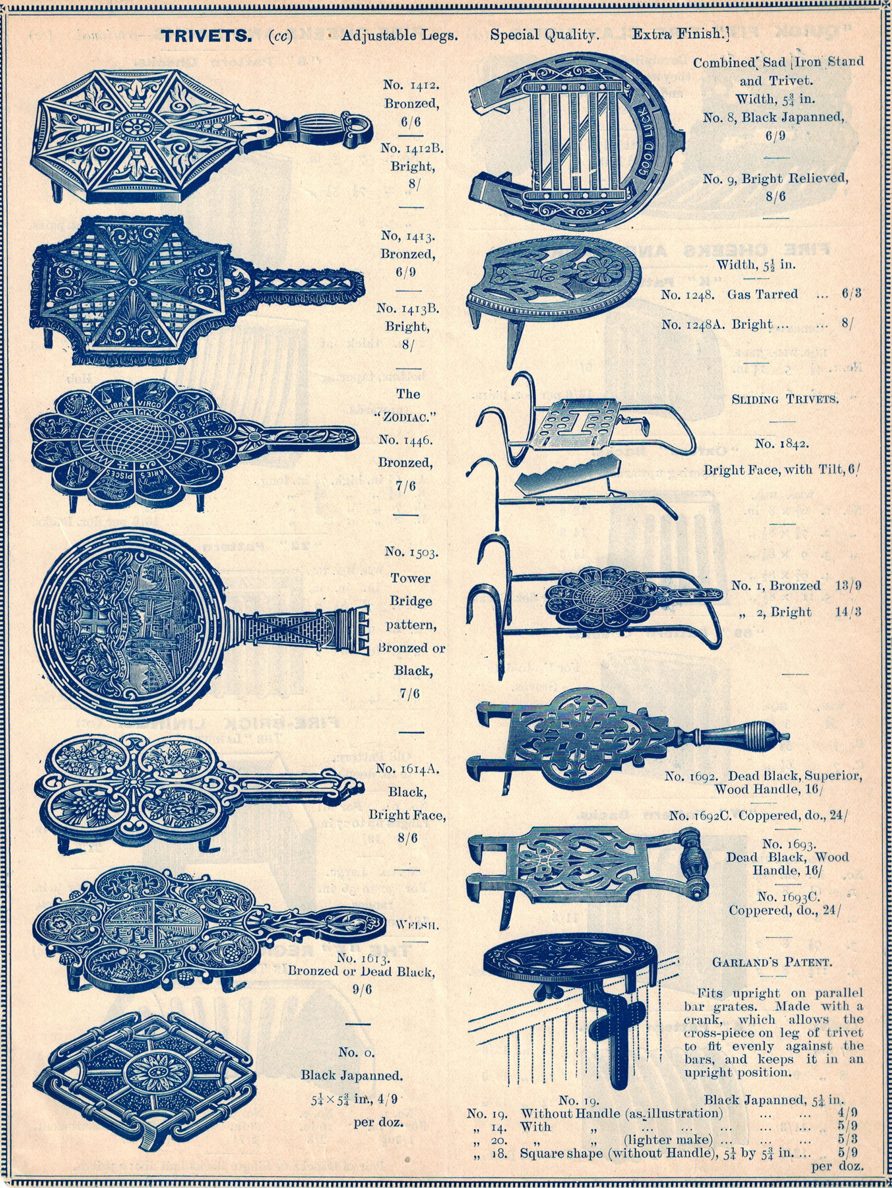 I recently purchased this catalog page which was taken from the 1908 Crowden & Garrod Catalog, London. After taking a closer look at the designs I realized I have several of these trivets! Here is one of my favorites.