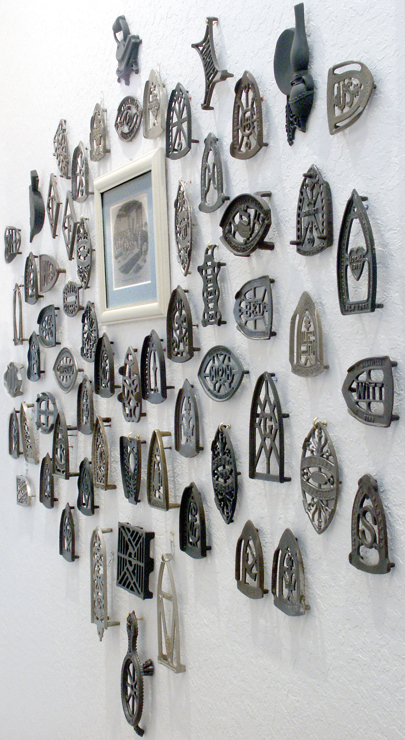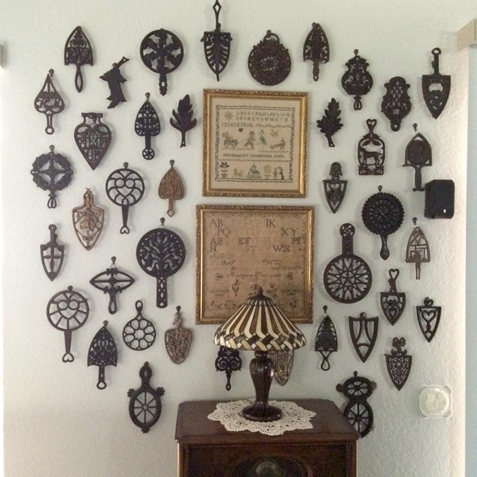 Trivets and sadiron stands are not only wonderful to collect, but also quite interesting and decorative. Fortunately, walls can be utilized to display this type of collection without sacrificing floor space.