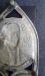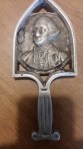 SIGNATURE: The original George Washington trivet had no inscription on the reverse. Antique reproductions weren’t typically signed; vintage trivets might have a stock number. Contemporary reproductions like those from JZH, Dirilyte, Virginia Metalcrafters (VM) and others are imprinted with the company name and sometimes other information such as a date, logo or the abbreviated name GEO WASHINGTON.
