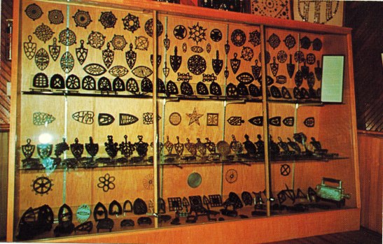 Pioneer Village Collection of Trivets, Minden, Nebraska ~ Trivets were among dozens of unusual collections in their Hobby House. The Pioneer Village is still thriving on the prairie and claims to have the largest private collection of Americana anywhere!