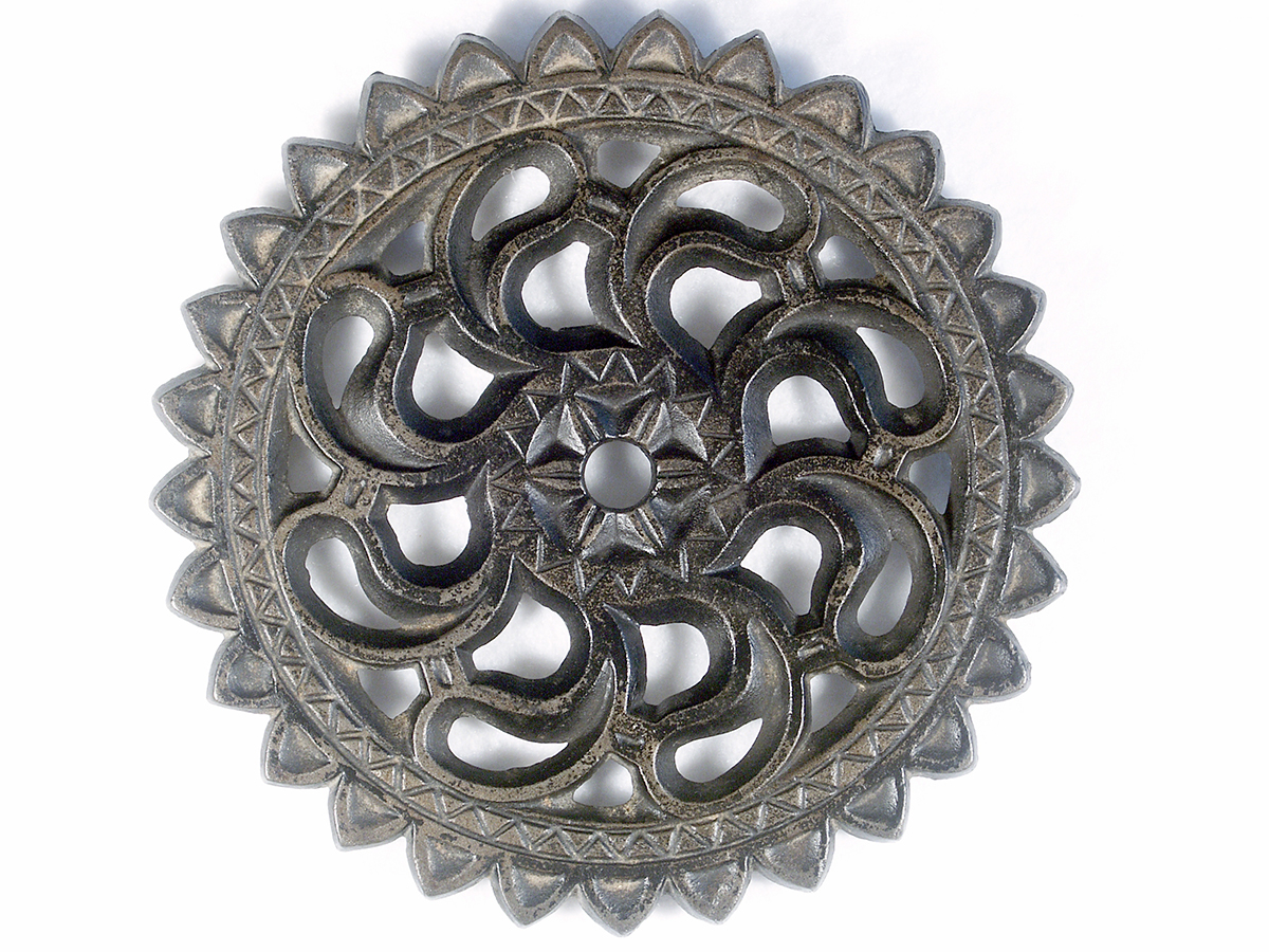 JZH 1955 H, Version #1 w/open center. Diameter 6 1/8″. Pinwheel design aka Chinese swastika.