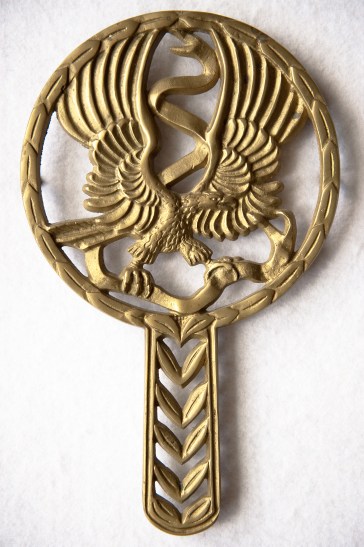Wilton: Eagle & Snake. Brass, 11 7/8 x 7 1/4” w/4 feet. On reverse: WILTON. Oversized, limited issue, not shown in the Wilton catalogs; circa 1960s. Wilton brass was not lacquered.