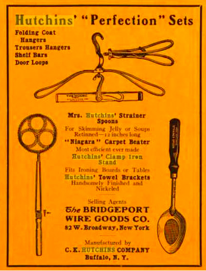 The C. K Hutchins Company produced a variety of useful household gadgets. This sad iron stand is mentioned halfway through the ad below, published in the July 1906 issue of “The House Furnishing Review.”