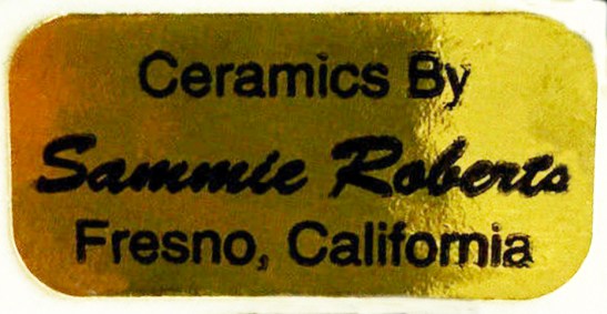 Sammie Roberts Ceramics are modern pieces, signed S. Roberts. Some may still have a small, foil sticker affixed. Besides sprinkler bottles, she also made pie birds, string holders, and other items.