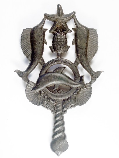 1952 Marineland (of Florida) ~ CI, 8 1/2 x 4 7/8” w/4 feet. On face: MARINELAND. On reverse: MARINELAND, COPYRIGHT 1952 VA. METALCRAFTERS 9-32, the VM/Betty Lamp logo and HB. (Marineland of the Pacific didn’t open until later, in 1954.)