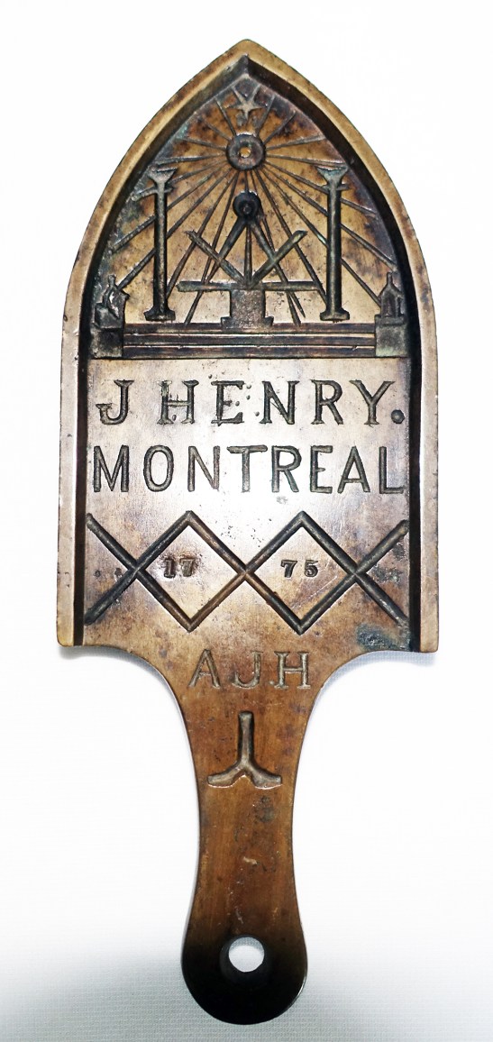 Front: J HENRY. MONTREAL 1775 AJH. Note the Masonic symbols.