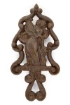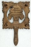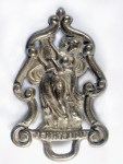 J.Z.H. 1945 E ~ Cast iron, 8 3/4″ x 4 1/2” w/three 1/2” feet. This is a mid 20th century reproduction of the Euterpe design. On face: JENNY LIND. On reverse: JZH 1945 E. The back is flat and the feet are short.