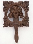 Jenny Lind Wreath Portrait ~ Cast iron, 9 1/8″ x 5 1/4” w/three 1” legs. Sprue mark on center reverse; unsigned. Legs may have originally been longer; they appear to have been cut down. This is the oldest and rarest of my Jenny Lind trivets.