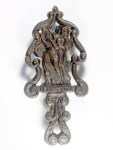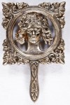 Jenny Lind Square Portrait ~ Brass, 7 5/8″ x 4 3/4” w/four 1 3/4” legs. Sprue mark at top center edge; unsigned. Note how wear is even more evident on the higher edges of the casting, due to the softer nature of brass. Sandy texture to reverse surface.
