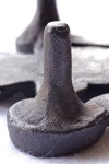 Cast iron is the most commonly found metal, followed by brass, nickel-plated cast iron and bronze.The oldest (antique) versions have visible casting marks and age related wear to the top surface. There may also be a slight bend to the legs from use.