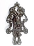 Jenny Lind Euterpe w/Two Swirl Handle ~ Cast iron, 9 1/8″ x 4 5/8” w/three 1 3/8” legs. Sprue mark on center back; backcoping to center of figure. On face: JENNY LIND. This is the most commonly encountered design.