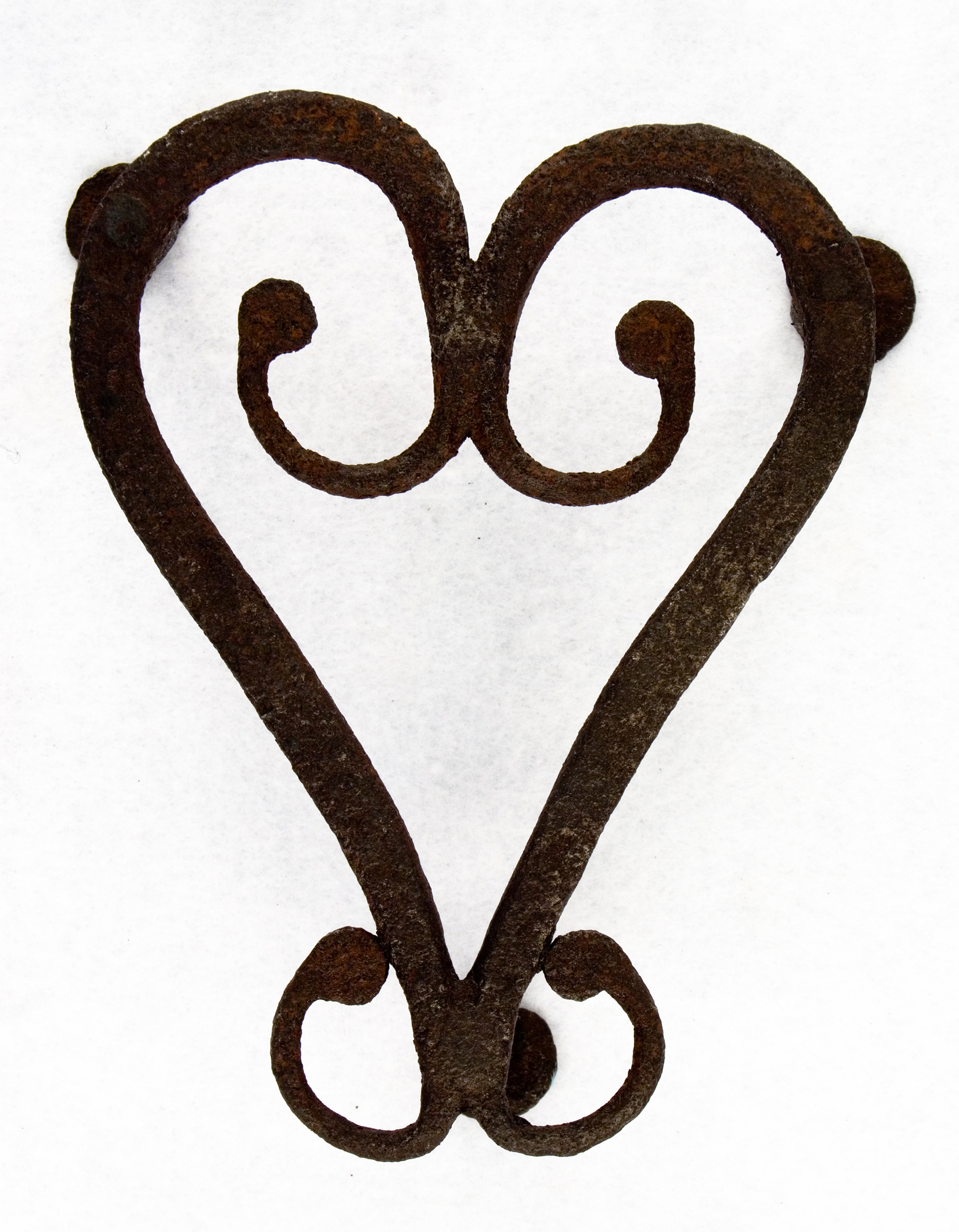 Forged Heart ~ hand forged iron, 5 1/4” x 4” w/three 1 1/4” legs ending in penny feet.