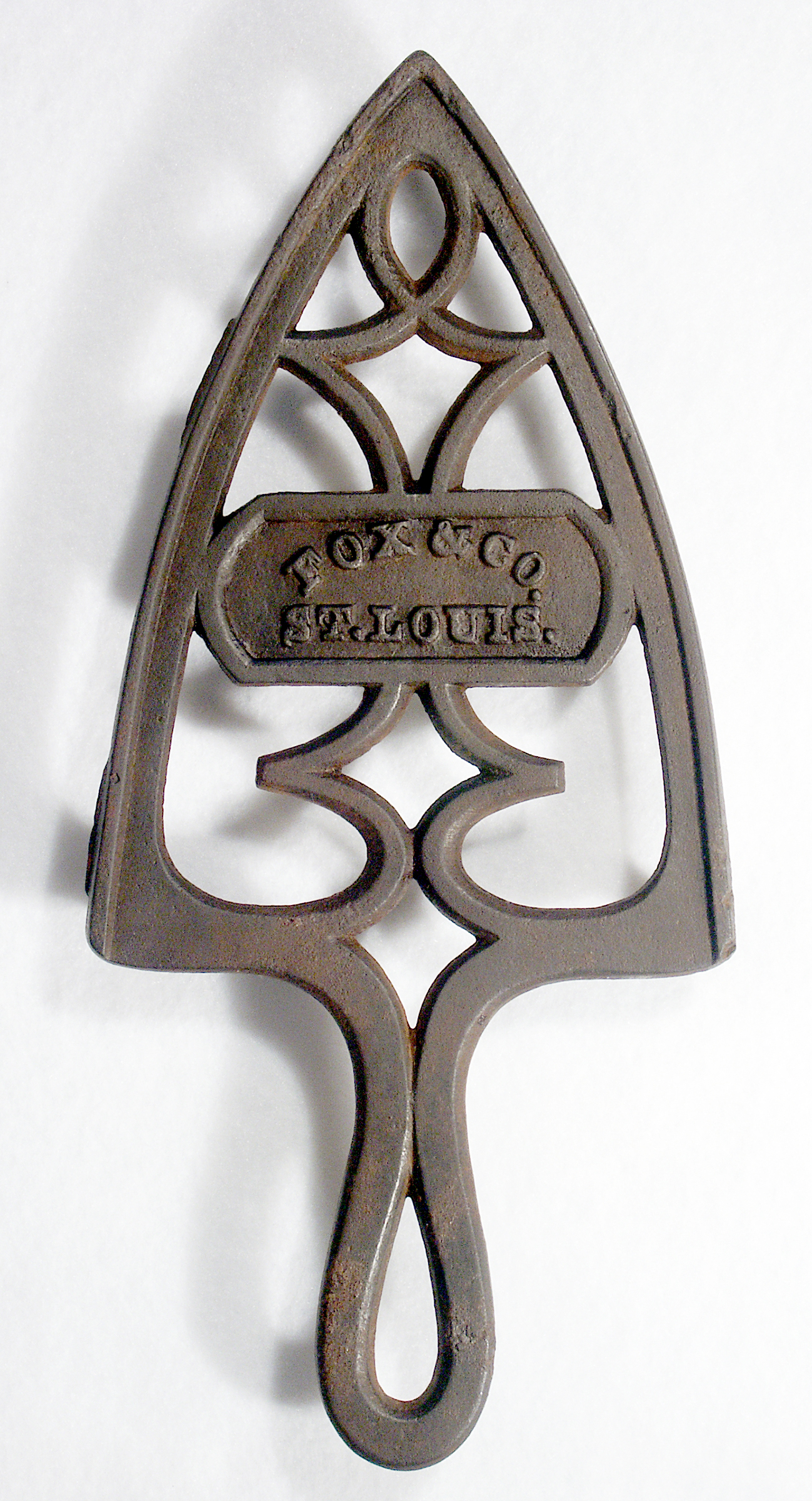 FOX & CO. ST. LOUIS – Cast iron, 8 3/8 x 3 3/8″ w/three 1″ legs. Shallow side rails; two rough gate marks along edge. On reverse: No.2.