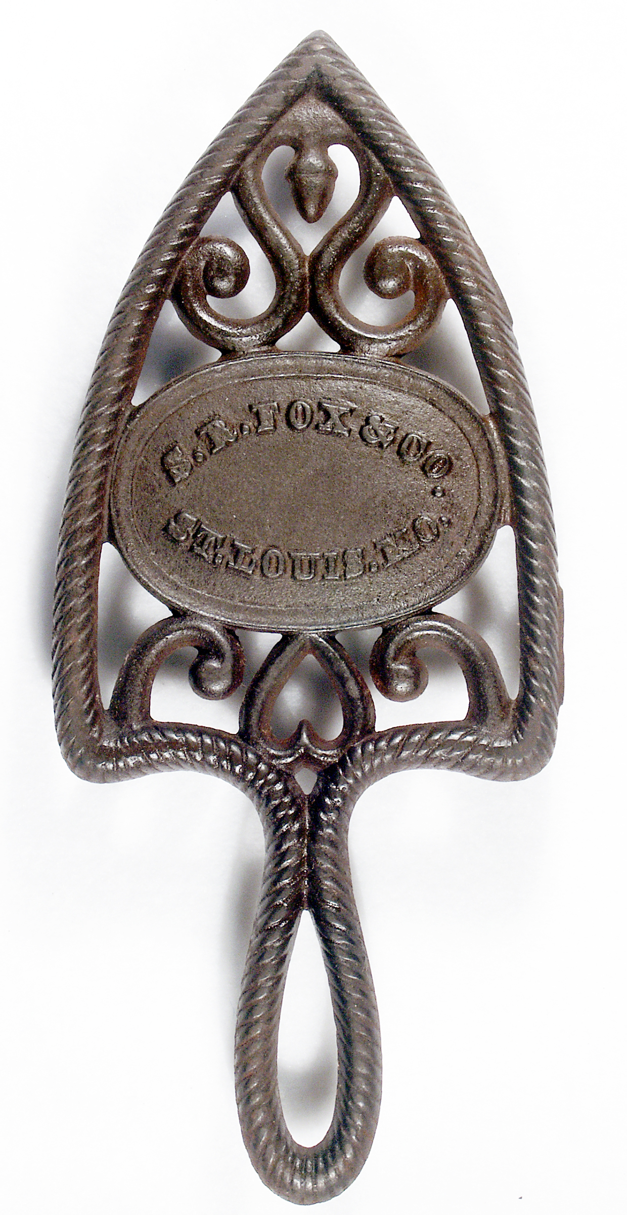 S. R. FOX & CO. ST. LOUIS MO. – Cast iron, 9 1/4 x 4″ w/three 1 1/8″ legs. Two rough gate marks along edge. On reverse: No.1.