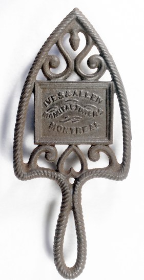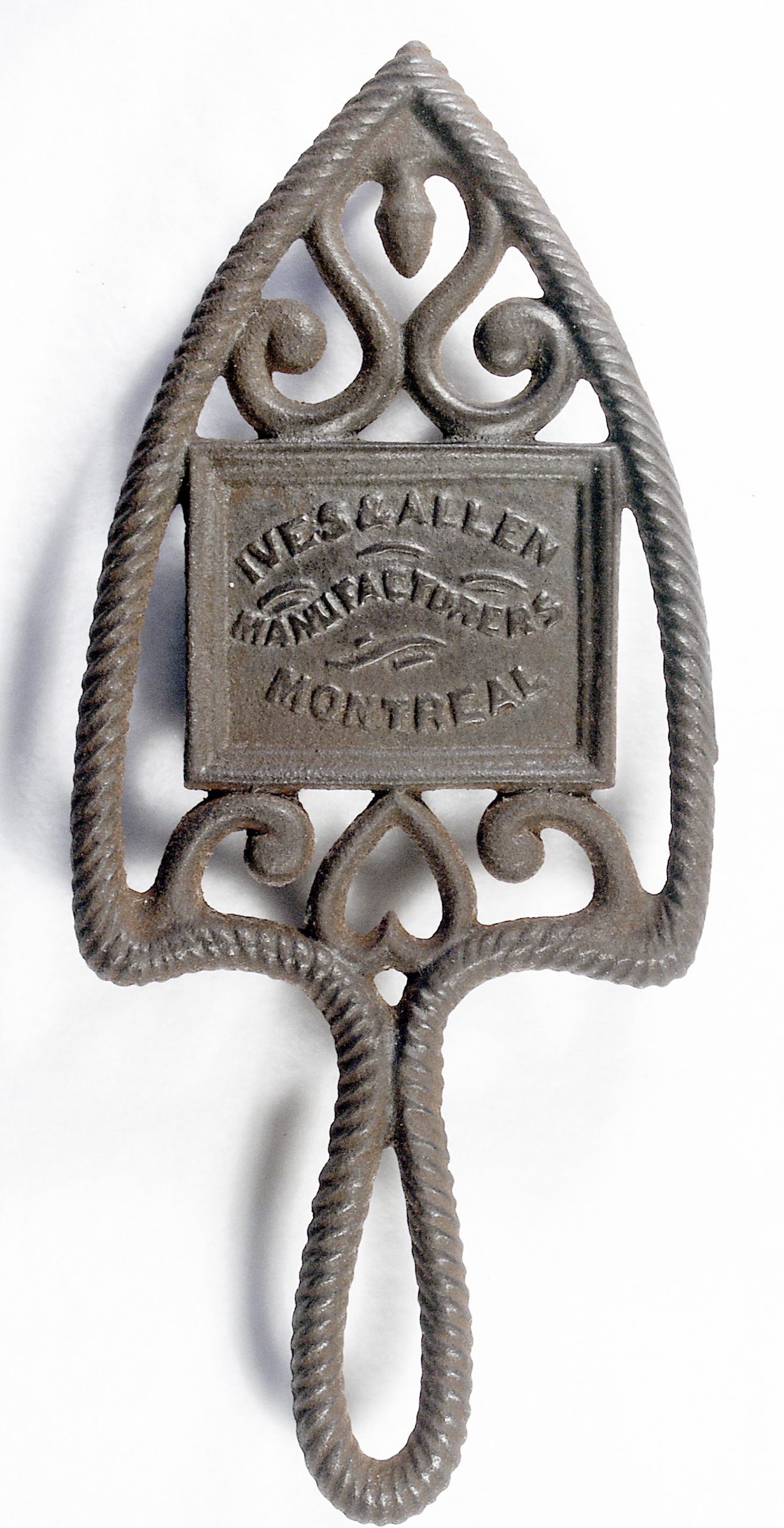 IVES & ALLEN MANUFACTURERS MONTREAL – Cast iron, 9″ x 3 7/8″ w/three 1″ legs. Predates 1874.