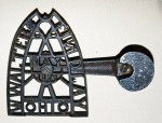 8. Six In One Universal Household Tool, Park Novelty Company, Baltimore, Maryland; circa early 1900s. There are two versions of this trivet; both are marked PAT PEND on the reverse. The early magazine ad (above) illustrates the various uses for the tool, one of which is “Iron Stand”. The Six In One trivet.