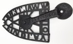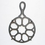 Added 2/02/20: Gallery Images 10 a-e. Stand for Sad-Irons Patent 11,206 was assigned on May 27, 1879 to L. & W. H. Berger. Cast iron in a honeycomb design with patent date on the handle front. Note that this design inspired the JZH “W” Alphabet Trivet reproduction produced in 1948.