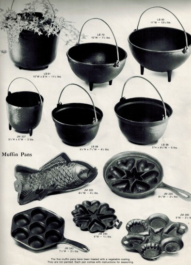Page 11: Kettles, Muffin Pans. This caption appears below the muffin pans: The five muffin pans have been treated with a vegetable coating. They are not painted. Each pan comes with instructions for seasoning.