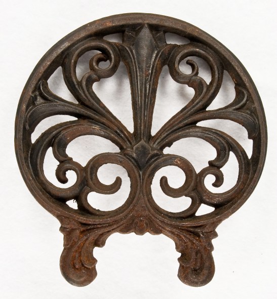 The trivets illustrated above might have attached to a parlor stove, fireplace fender or fire-bar rail. Trivets of this type would have supported a tea pot or small dish close to the heat source.