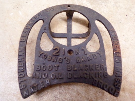 I’ve found this company and its blacking products nearly impossible to research. Back in 2005 I contacted the Stoneham (Massachusetts) Historical Society. Unfortunately they had no historical information on file, but they later found a Young’s stand packed away in a storage box that contained wagon and harness items.