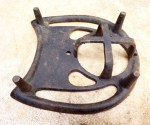 Each stand sits at an inclined angle, with the front legs slightly longer than the rear legs. The most complete advertising appears on Version #3 (the stand with the gold wash). Besides whatever purpose they served for the Young company, they could also have been used as sadiron stands. Most likely they pre-date 1900.