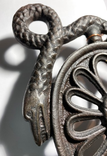 Published on February 1, 2023 at 1410 × 2048 in Sad iron stand with eagle and snake imagery