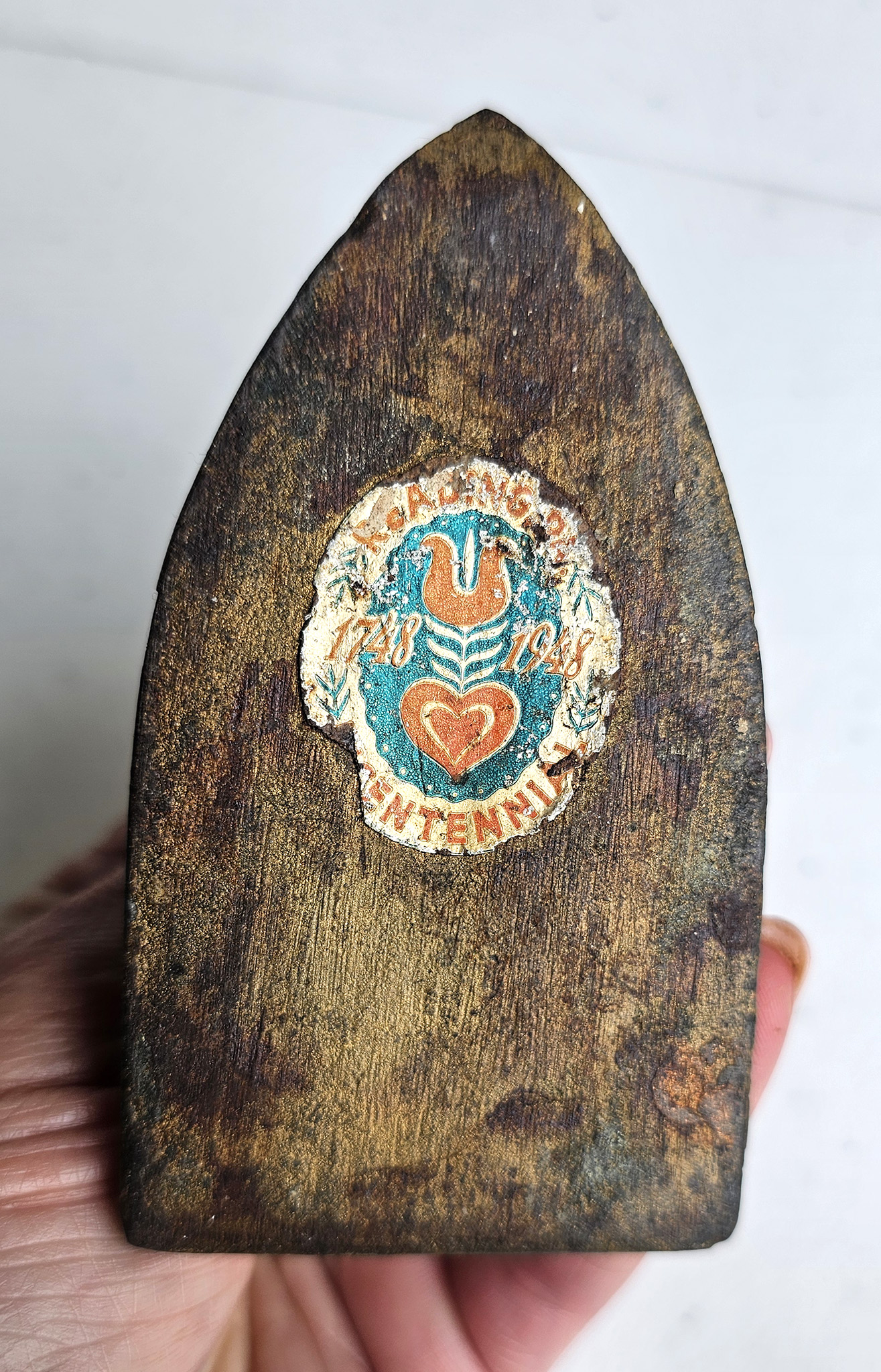 Could it be possible that Ray Harpel produced and sold some of his figural goose irons during the centennial? Or did the owner of that iron simply affix a decorative sticker to the soleplate? We may never know for sure …
