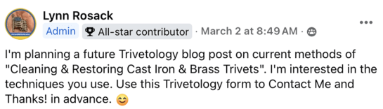 Collecting, cleaning, displaying, researching, and appreciating TRIVETS and related go-withs!