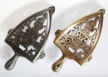 Nickel plated cast iron stand, original finish, 9 1/2 x 4 3/8″ w/three 1” legs. This antique Scottish design is one of my favorites! Its spade shape would have accommodated … Continue reading