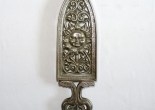 This beautifully designed cast iron German sadiron stand/trivet features a benevolent sun. It’s in near mint condition with its original nickel plating. A trivet of this type would have supported … Continue reading