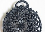 This design is among my favorite trivets. The inscription on the unusual curved handle reads E R MANLEY. The center and outside edges feature braiding. Eleven circles, each with a … Continue reading